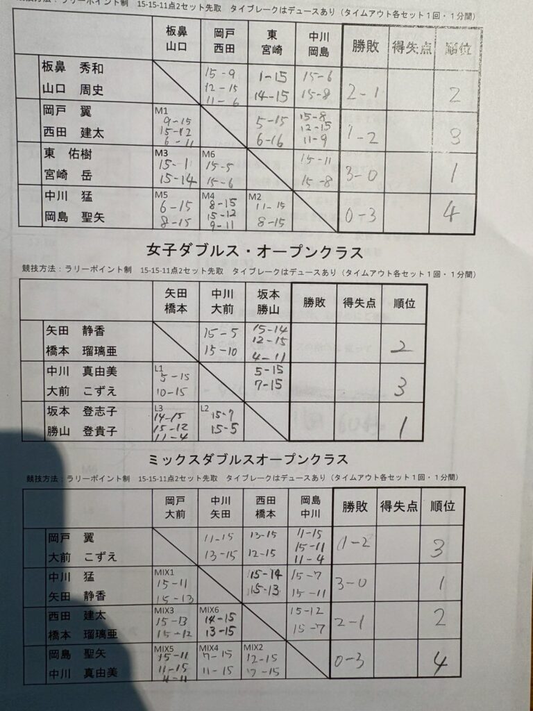 競技種目 ①男子ダブルス・オープンクラス